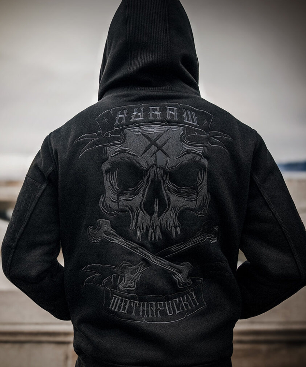 • absoluter Hingucker der gestickte Totenkopf auf dem Rücken