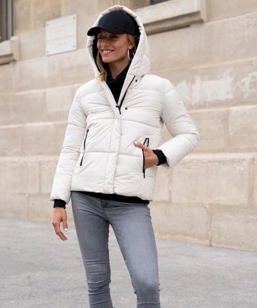 - Kurze Daunenjacke mit Kapuze